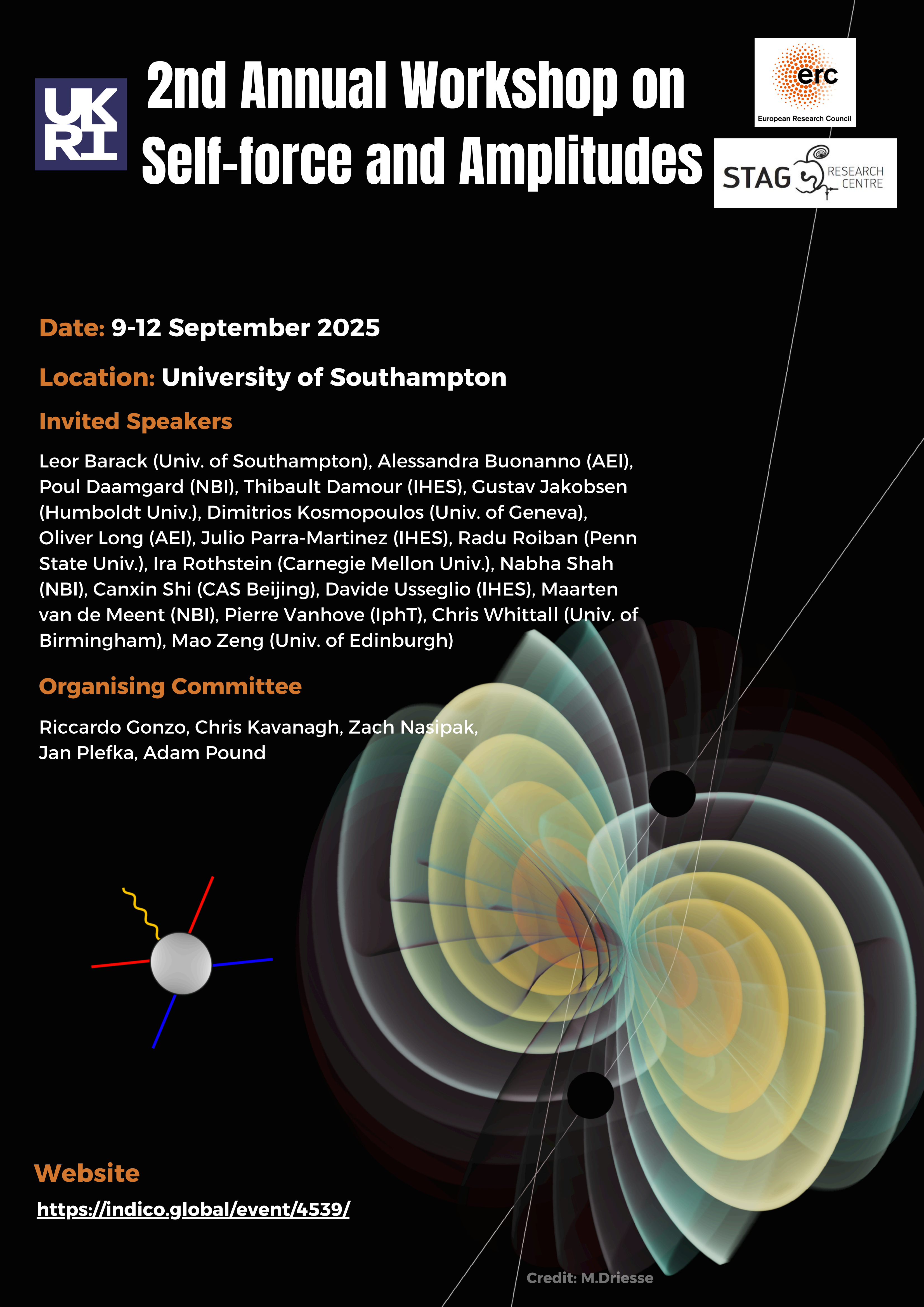 2025 ![]() | Organizer — 2nd Annual Workshop on Self-Force and Amplitudes (link) University of Southampton |